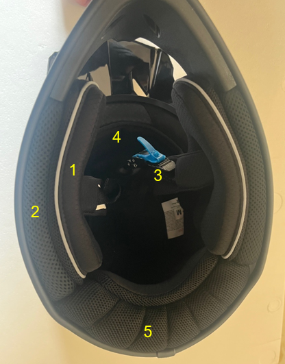 ●Rear bottom of the helmet 5:leather was replaced by sandwish cloth to reduce oder and more environment-friendly