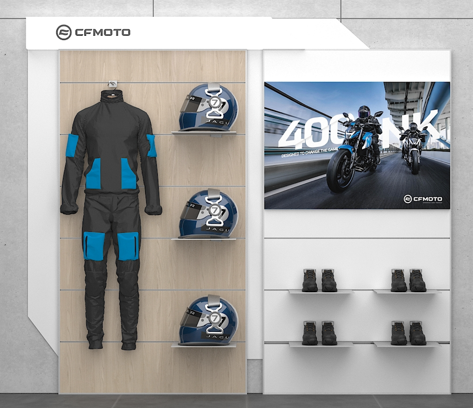 Note:This part code only contain the main body of the display rack must be used with accessories (Clothes hook/Helmet holder etc)